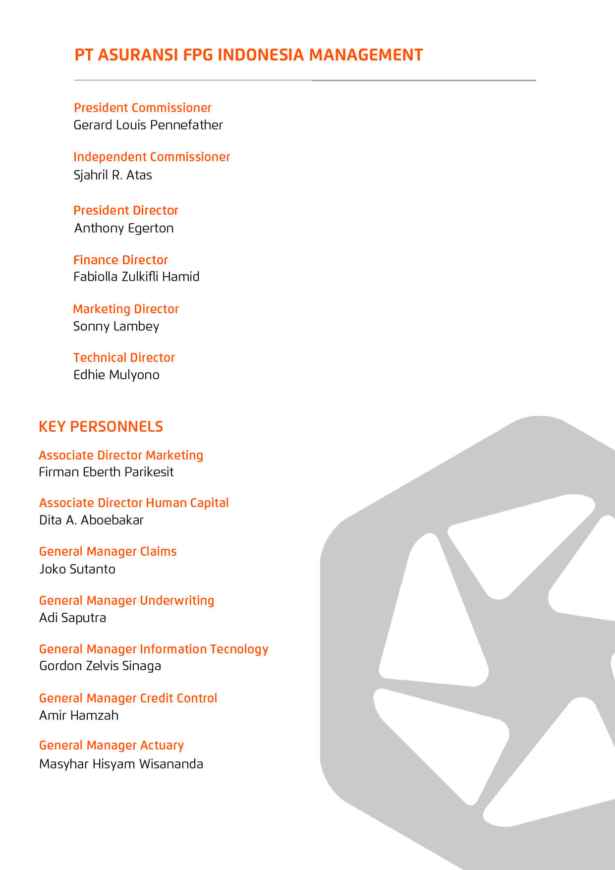 PT Asuransi FPG Indonesia untuk dapat meningkatkan kemampuan dan kualitas pelayanan yang unggul untuk meningkatkan pencapaian sasaran hasil usaha dengan memegang teguh komitmen untuk selalu menerapkan dan menyempurnakan penerapan Tata Kelola Perusahaan Yang Baik (Good Corporate Governance) pada setiap aspek bisnisnya yang sejalan dengan Peraturan Otoritas Jasa Keuangan Nomor: 73/POJK.05/2016 tentang Tata Kelola Perusahaan Yang Baik Bagi Perusahaan Perasuransian